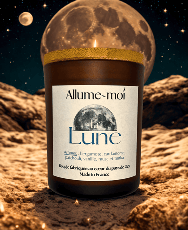 Cette nouvelle bougie vient tout droit de l'espace, elle renferme une fragrance captivante parfaitement conçue pour évoquer la sérénité et le mystère de la lune.